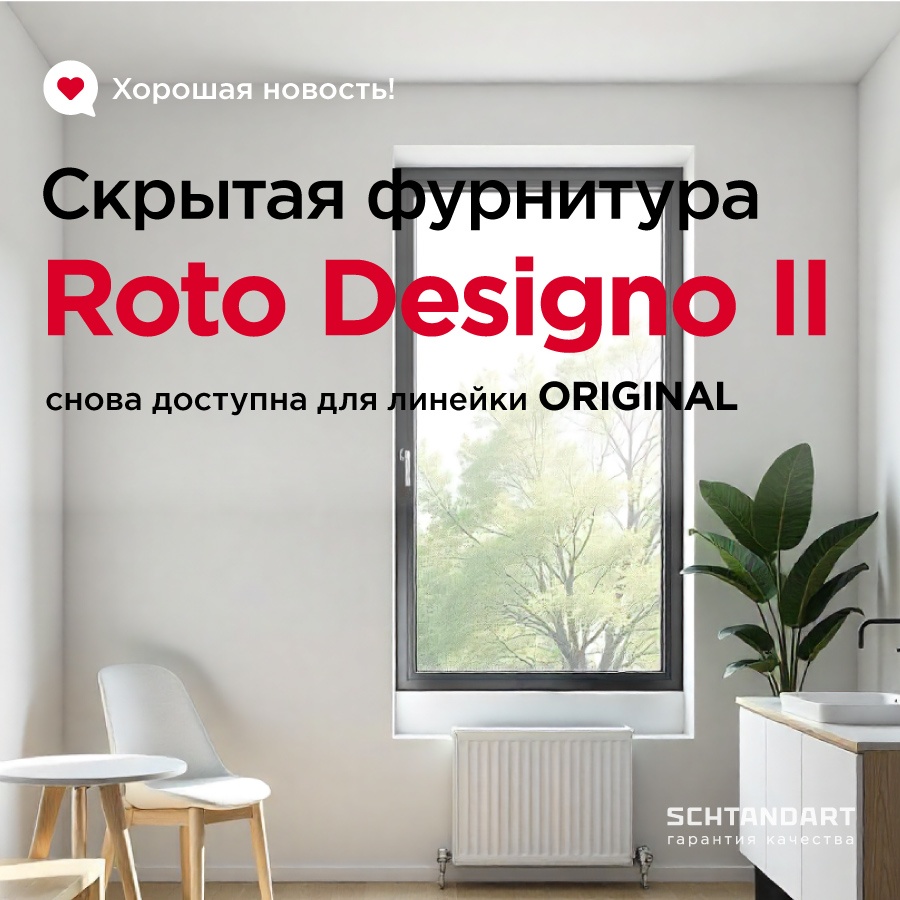 С радостью сообщаем долгожданную новость — скрытая фурнитура Roto Designo II снова доступна к заказу для конструкций линейки ORIGINAL!