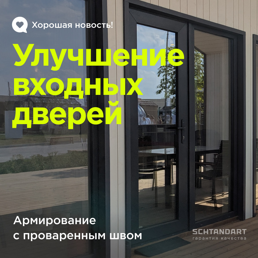 Продолжаем серию новостей про качественные изменения нашей продукции, которые проводятся нами на постоянной основе и являются приоритетом для всей команды Schtandart. На этот раз улучшения коснулись входных дверей Рехау ГОСТ и ORIGINAL.