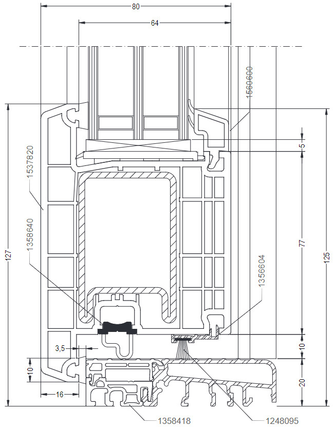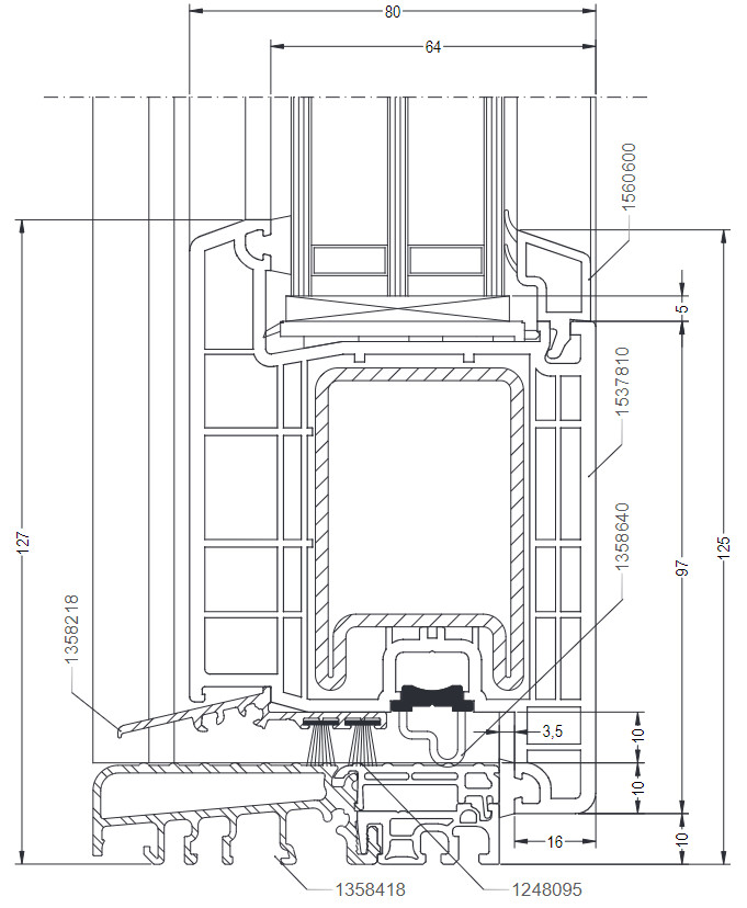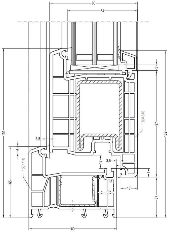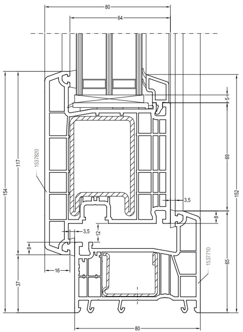 Сечения узлов входных дверей Рехау Doors 80